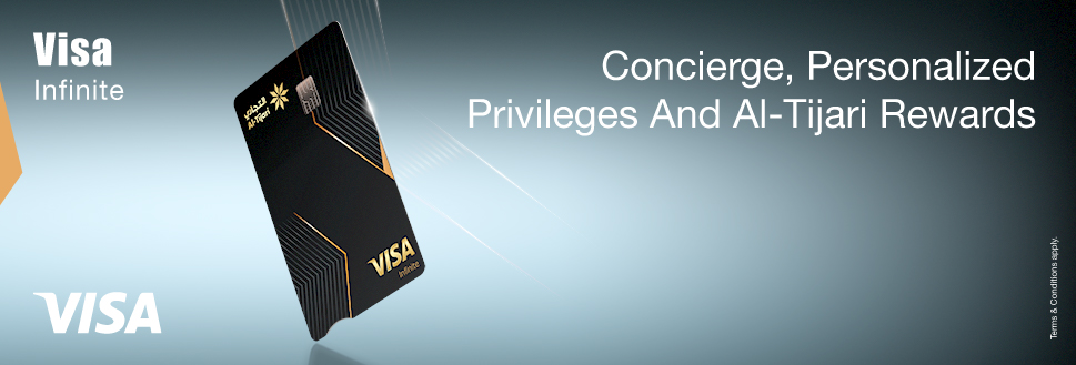 The Al-Tijari Visa Infinite Credit Card offers a world of privileges, tailored services, and rewards that redefine convenience and exclusivity.