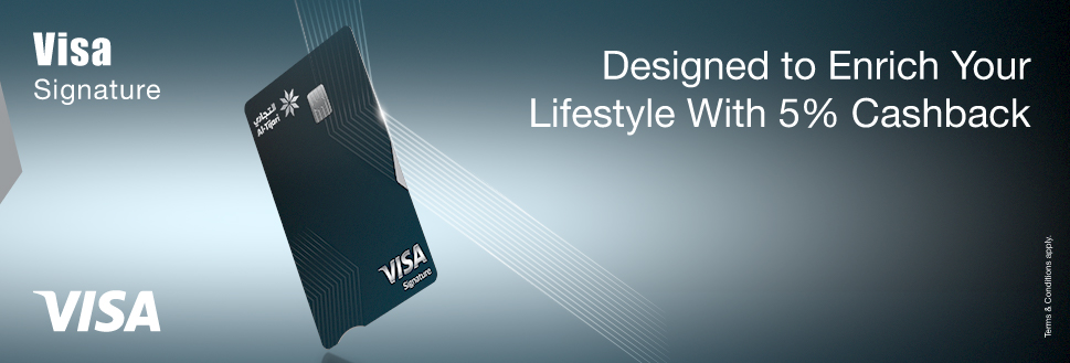 - All benefits, including cashback, are subject to eligibility and Al-Tijari Visa Signature program conditions, for terms and conditions click here.