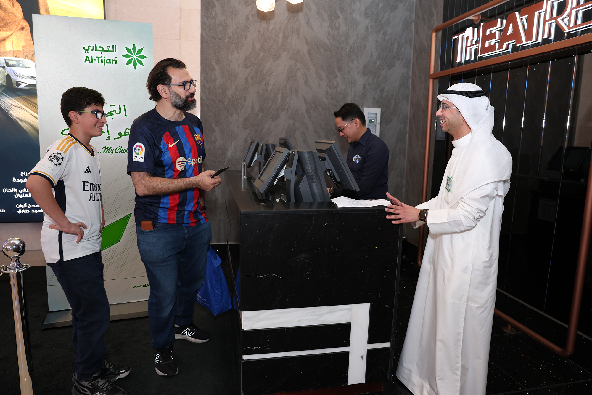Al Tijari hosted an exclusive event for Premier Banking customers by booking the VIP Theatre Hall at VOX Cinemas in the Avenues to screen the iconic El Clásico match. Guests were treated to a luxurious cinema experience, complete with premium seating and a football atmosphere like no other. The highly anticipated La Liga match between Real Madrid and Barcelona ended in a thrilling 4-3 win for FC Barcelona. It was a night full of excitement, cheers, and unforgettable moments shared among our valued clients.